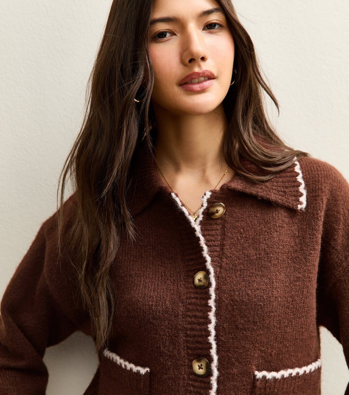 The New Look Brown Knit Collared Cardigan is made from knit.