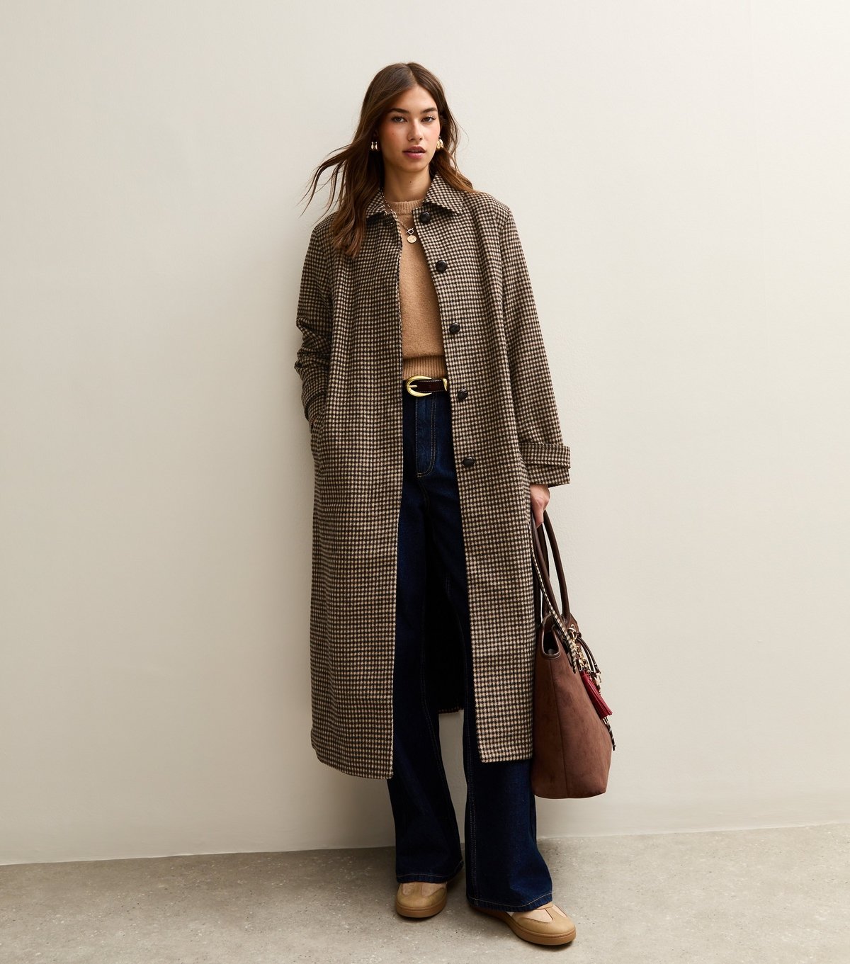 The New Look Brown Checked Belted Longline Coat is ideal for casual, everyday, work.