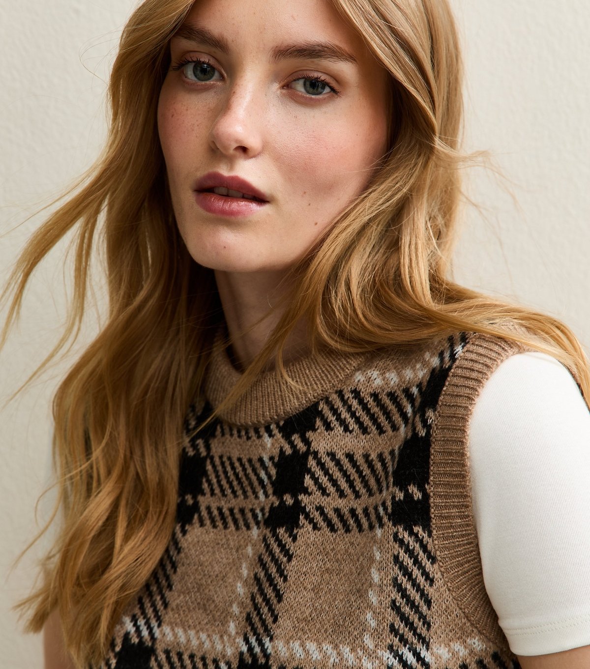 The New Look Brown Checked Sleeveless Jumper is ideal for casual, day-to-night.