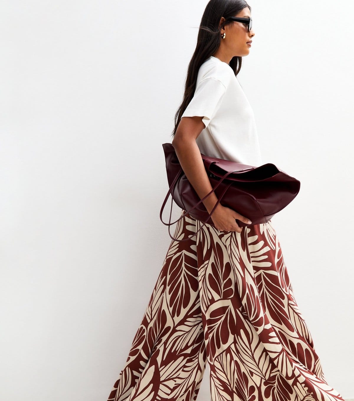The New Look Brown Leaf Print Palazzo Trousers is available in sizes 6, 8.