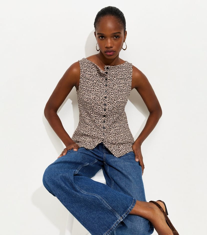 The New Look Brown Leopard Print Button Through Tank Top is ideal for casual, evening.