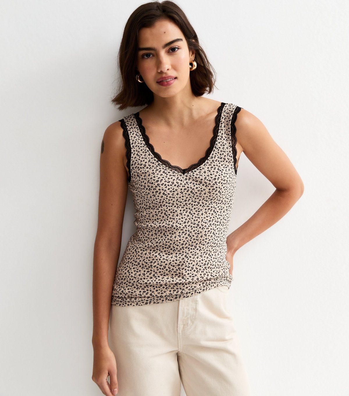 The New Look Brown Leopard Print Lace Trim Vest is ideal for casual, everyday.