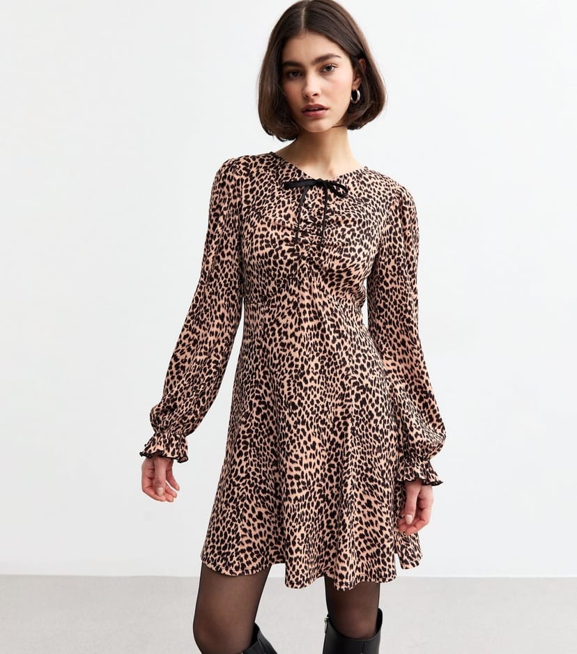 The New Look Brown Leopard Print Ruched Mini Dress is ideal for casual, daytime, evening.