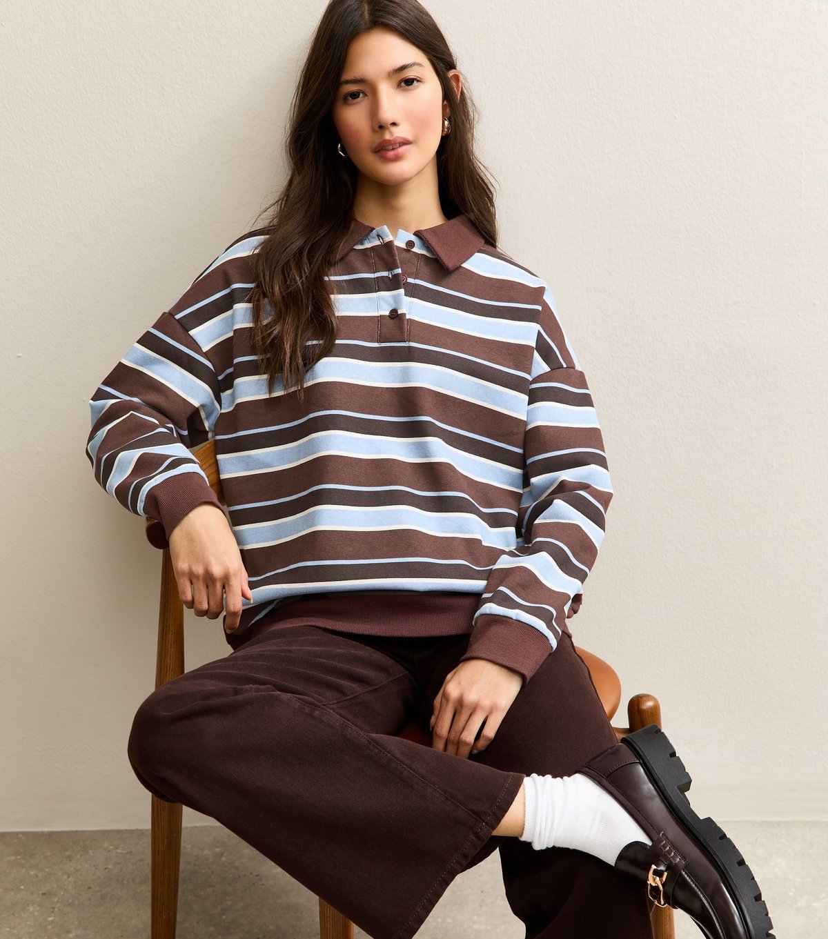 The New Look Brown Striped Rugby Sweatshirt is ideal for casual, everyday.