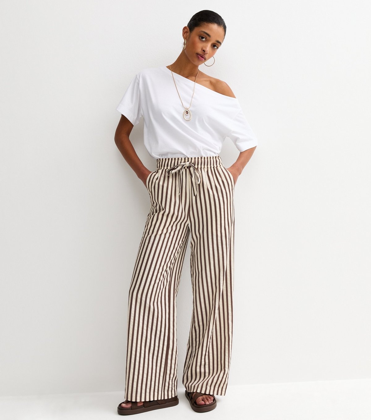 The New Look Brown Striped Seersucker Wide Leg Trousers is available in sizes 10, 12, 14, 16, 20, 8.