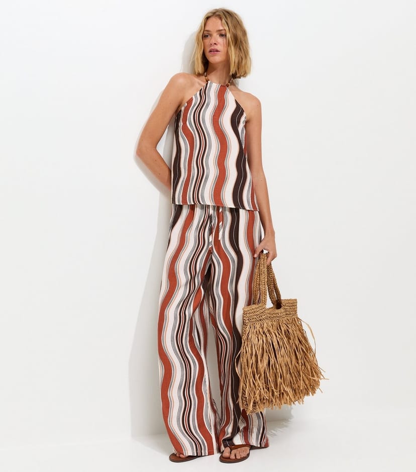The New Look Brown Striped Halter Top is ideal for casual, festival, beach.
