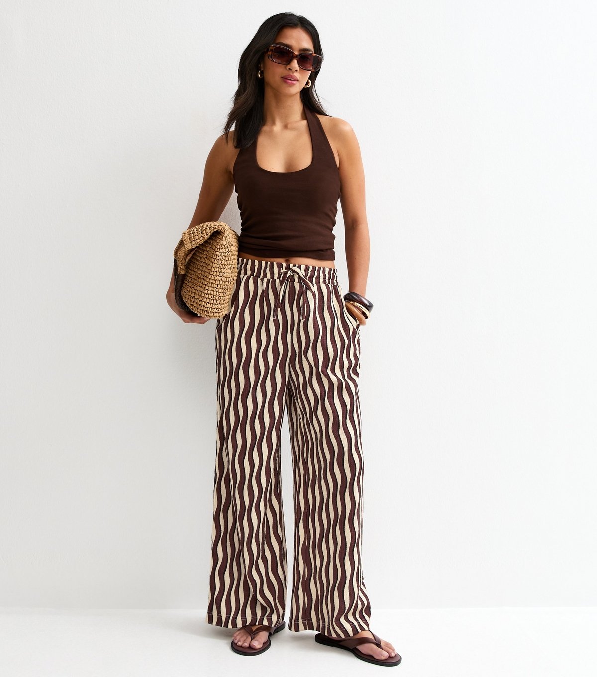 The New Look Brown Wave Crinkle Jersey Wide Leg Trousers is ideal for casual, day out, summer.