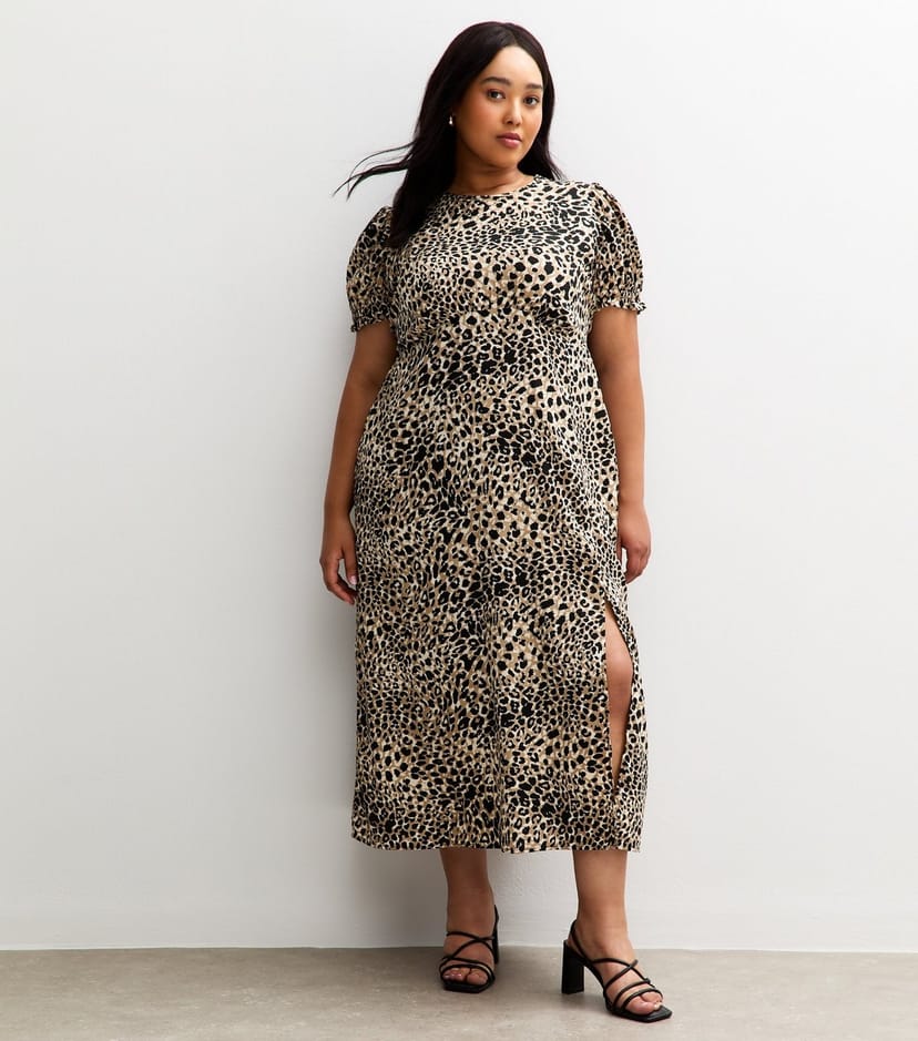 The New Look Brown Leopard Midi Dress Plus Size is ideal for evening, party, date-night.