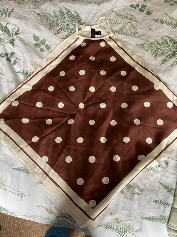 The New Look Spotty Satin Hanky Top in Brown is available in sizes S.