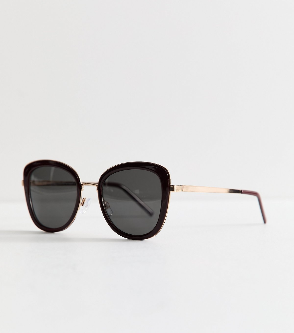 Stylish cateye sunglasses from New Look in burgundy. Featuring gold-tone metal arms and tinted lenses, these sunglasses offer high protection against glare.