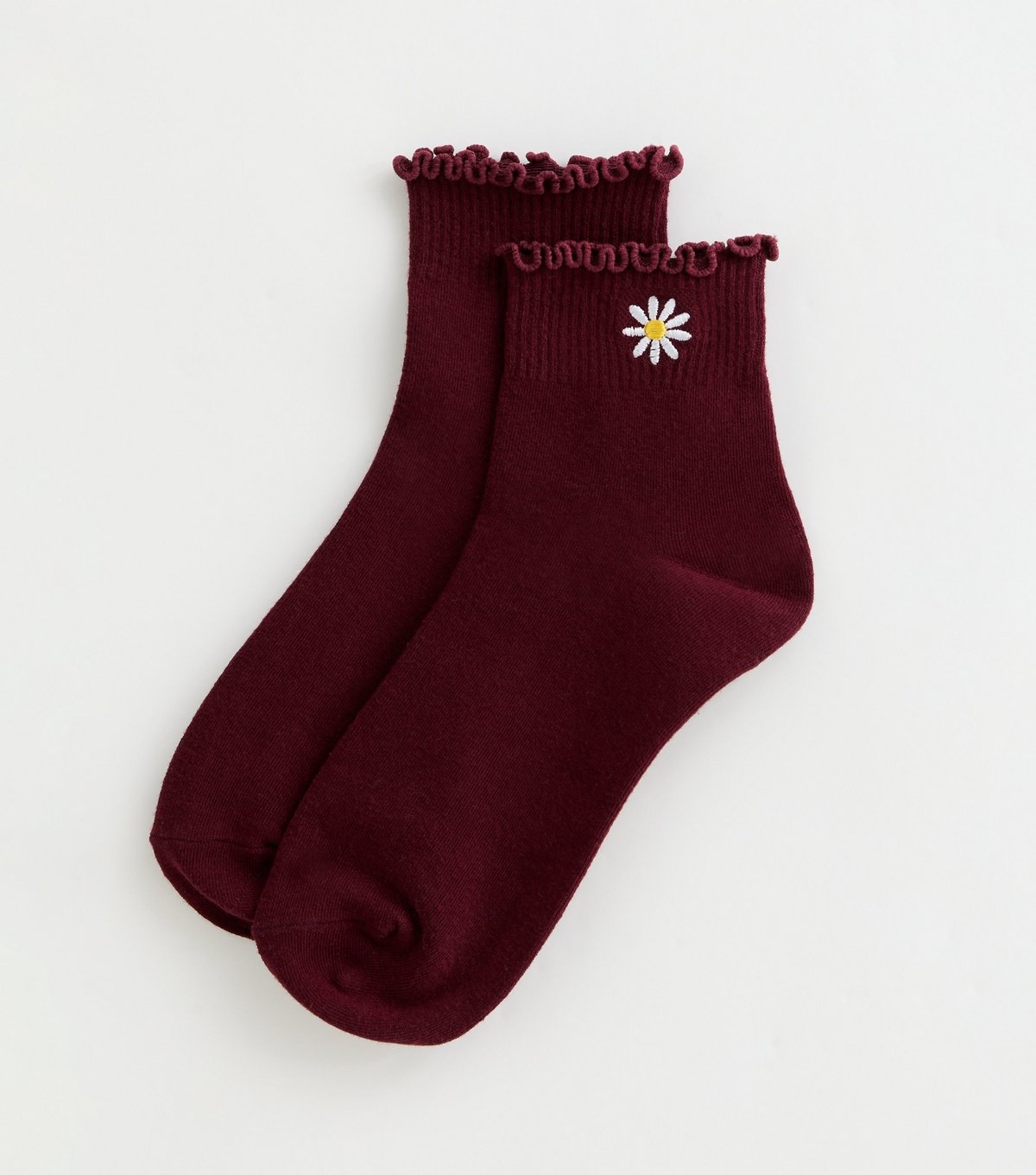The New Look Burgundy Embroidered Daisy Frill Ankle Socks is ideal for casual, everyday.