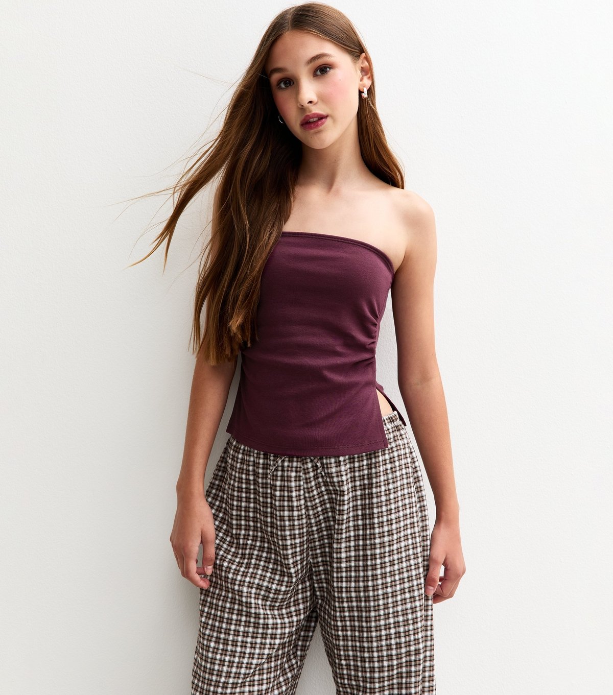 The New Look Dark Burgundy Ruched Side Bandeau Top is available in sizes 10-11 YEARS.