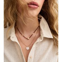 The New Look Gold Tone Beaded Shell Necklace is made from bead, shell, gold-tone metal.