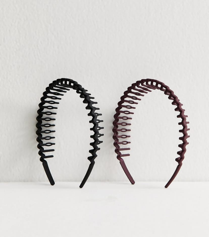The New Look Black and Burgundy Toothcomb Headbands is made from plastic.