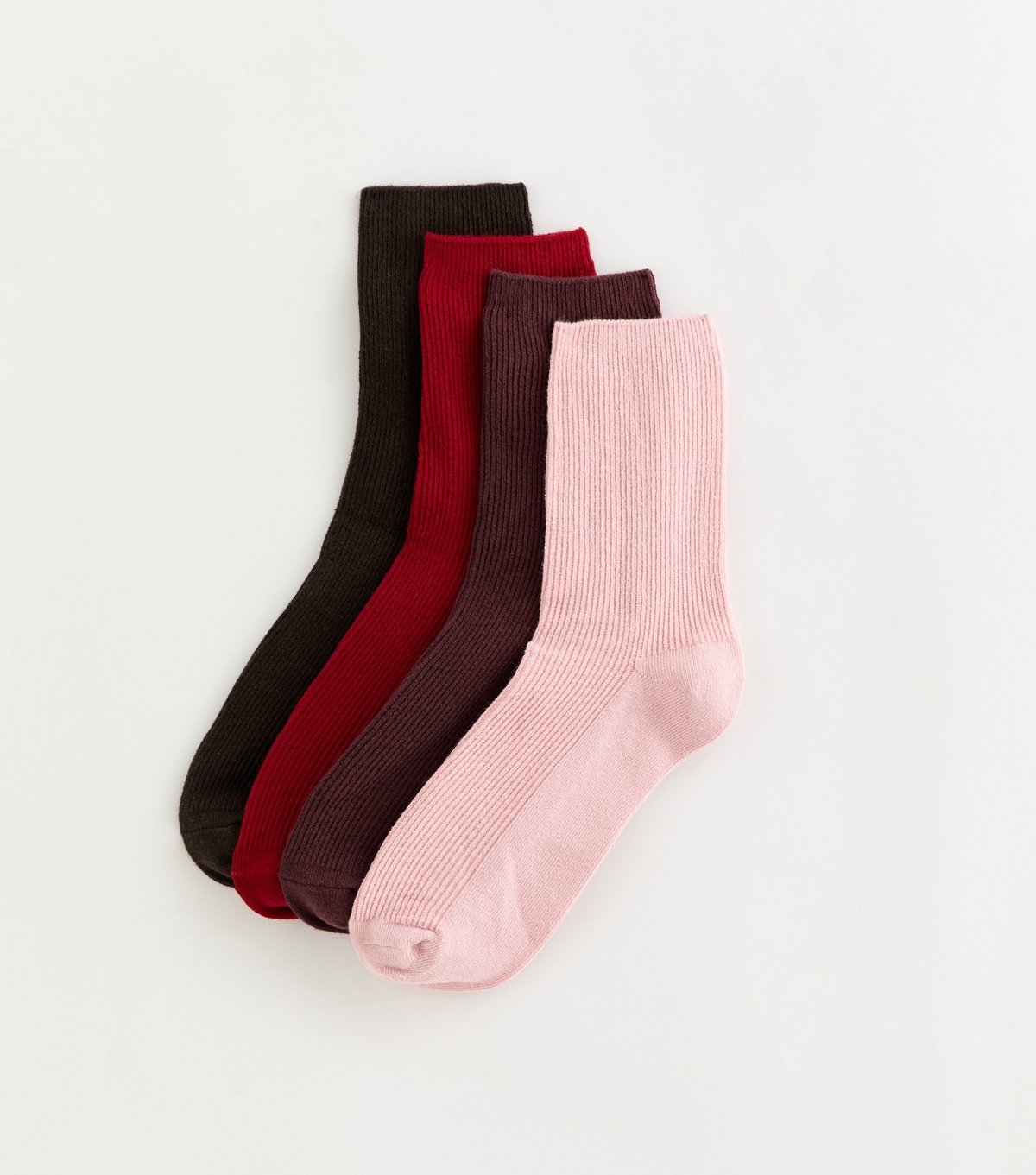 Stay comfortable with these ribbed socks from New Look. This pack includes a pink, burgundy, red, and black pair, perfect for daily wear. Made from stretchy ribbed fabric for a snug fit.