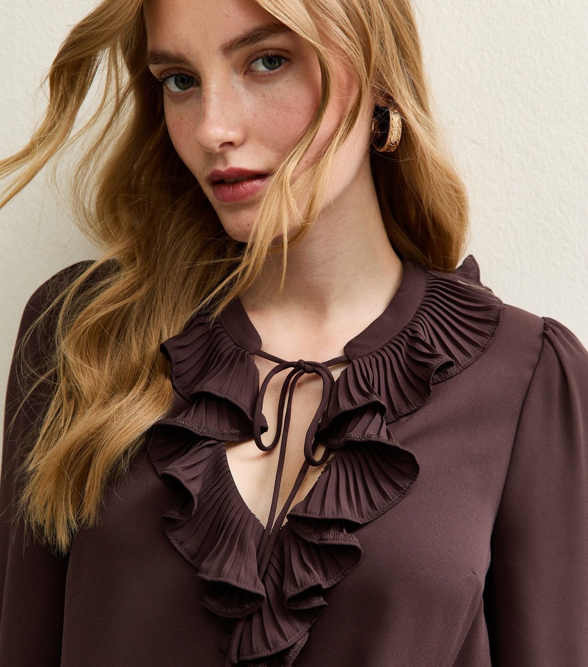 The New Look Burgundy Ruffled Tie Neck Blouse is ideal for work, casual, evening.