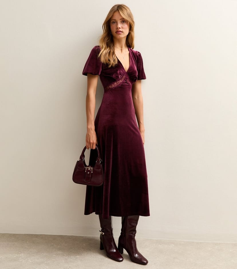 View New Look UK's returns policyThe New Look Burgundy Velvet Lace Midi Dress is made from velvet, lace.