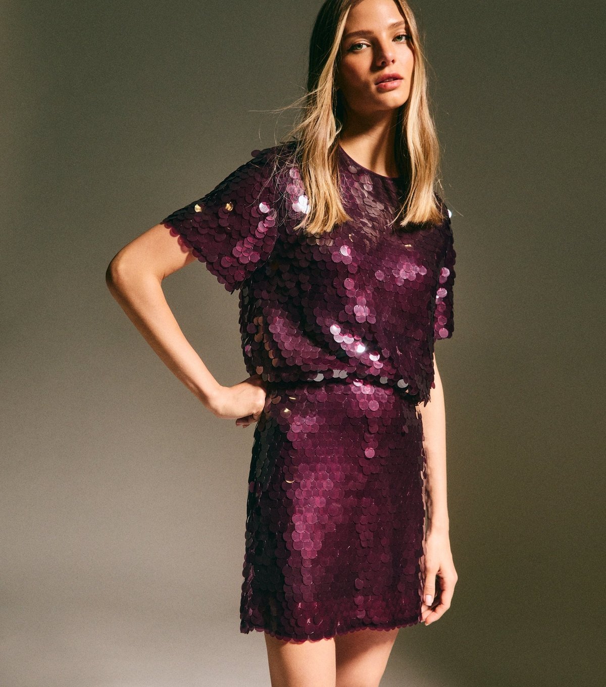 The New Look Dark Burgundy Sequin Mini Skirt is ideal for party, evening, date-night.