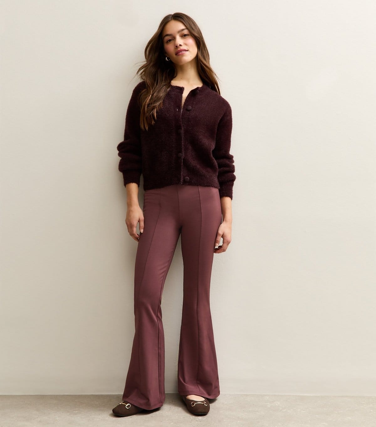 The New Look Burgundy Stretch Jersey Flared Trousers is made from stretch jersey.