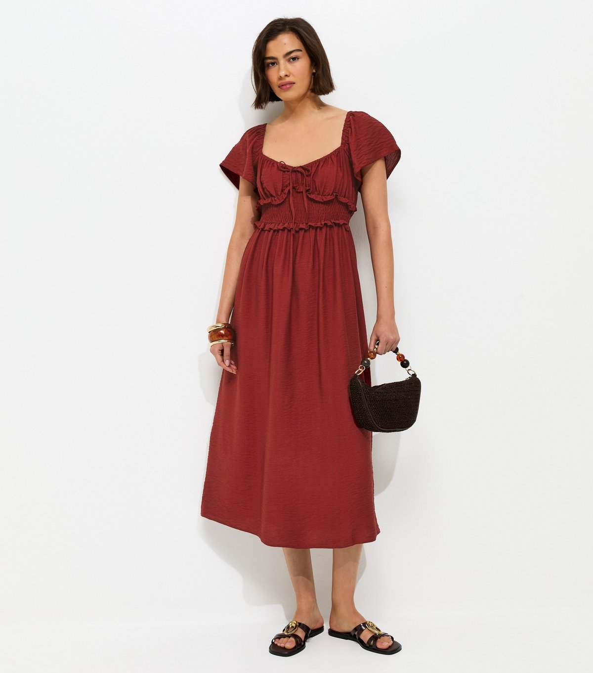 The New Look Burgundy Shirred Sweetheart Midi Dress is ideal for casual, evening, special occasions.