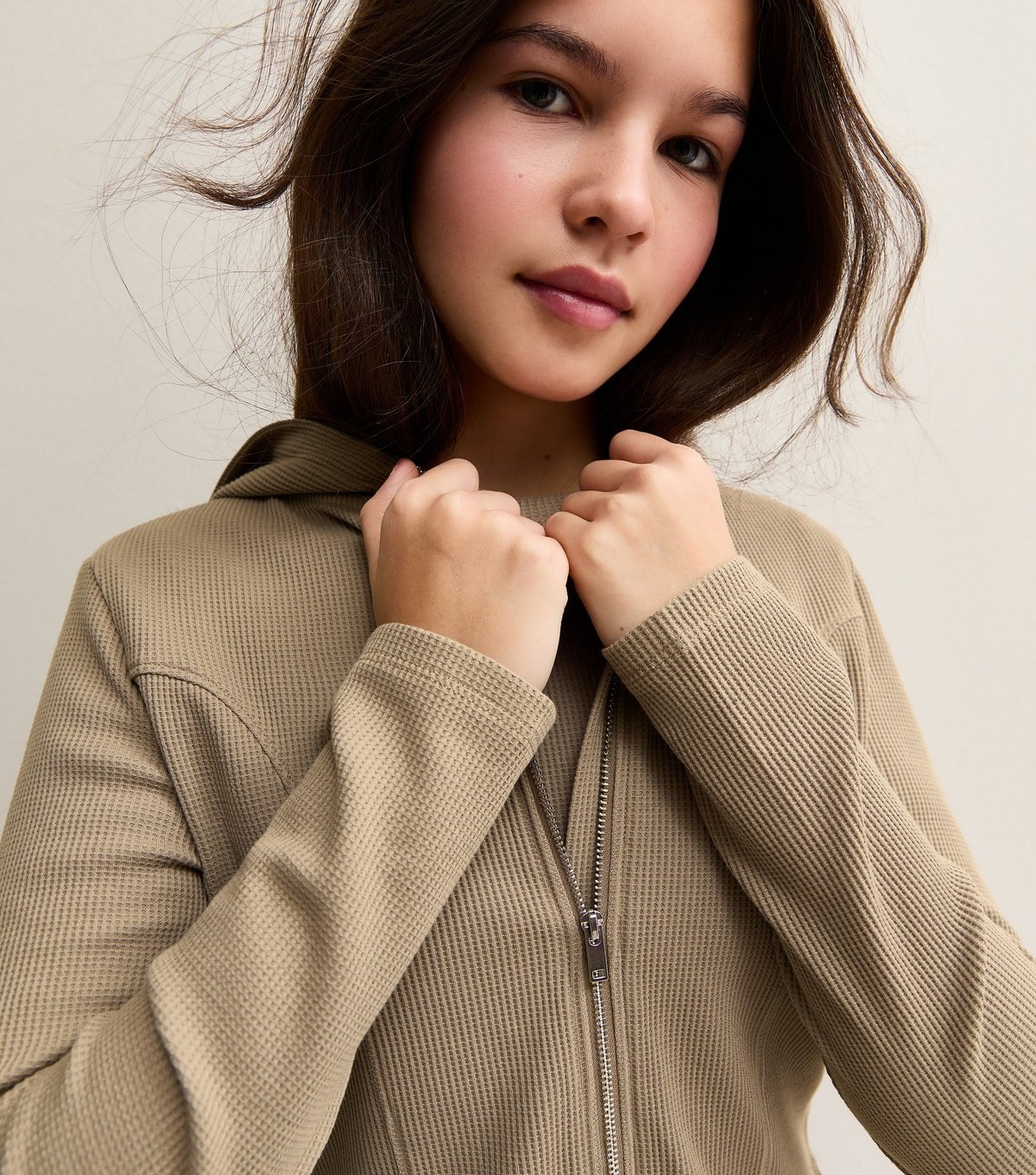 The New Look Camel Waffle Texture Zip Up Hoodie is made from waffle texture.