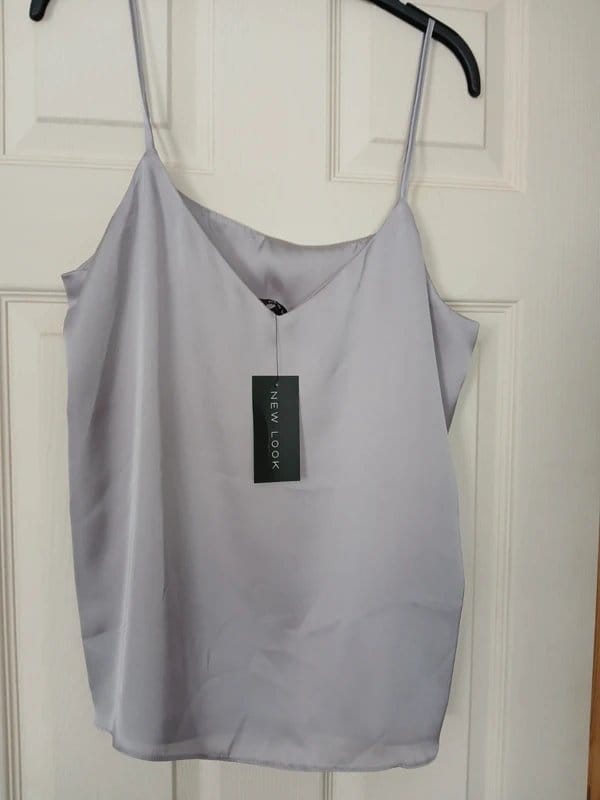 The New Look Grey Satin Cami Top is available in sizes M.
