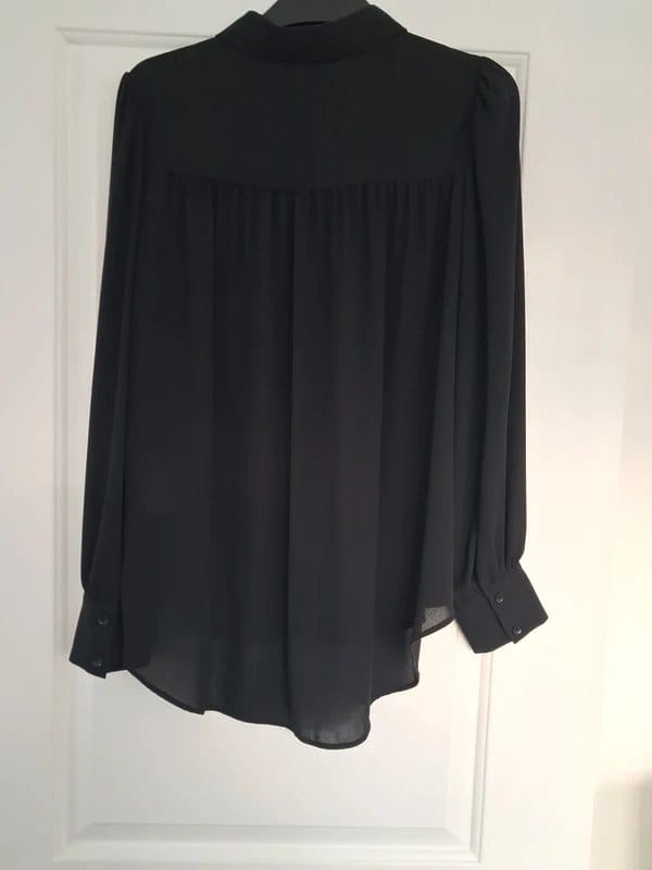 The New Look Black Chiffon Blouse is available in sizes M.