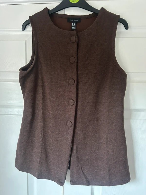 The New Look Knitted Button Waistcoat in Chocolate Brown is available in sizes M.