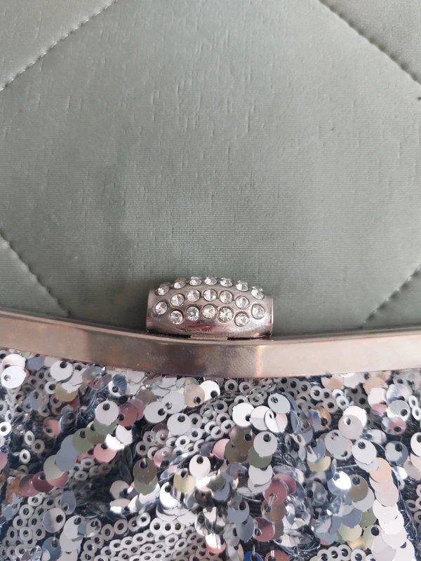 A stunning Silver clutch bag embellished with sequins, perfect for adding a touch of sparkle to any outfit.