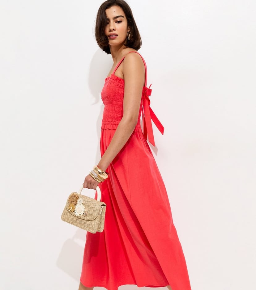 The New Look Dark Coral Cotton Midi Dress is available in sizes 10, 12, 14, 16, 18, 20, 22, 6.