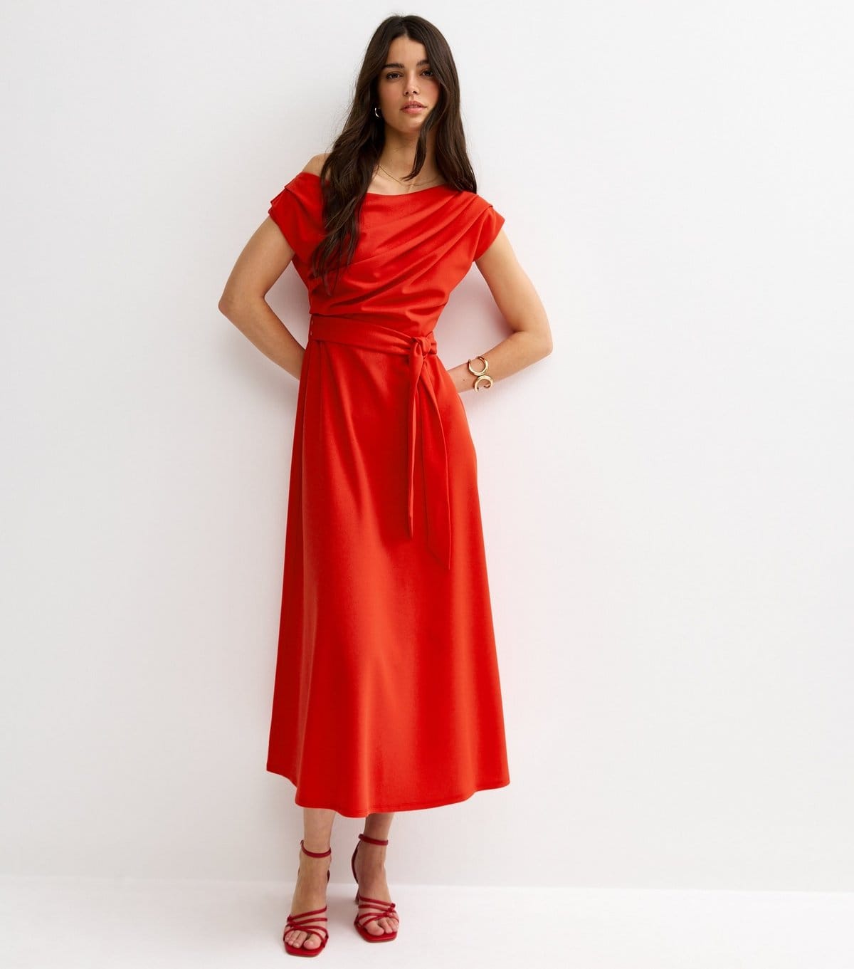 New LookNew Look Dark Coral Midi Dress with Tie Waist