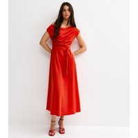 The New Look Dark Coral Midi Dress with Tie Waist is available in sizes 10, 12, 16, 18, 6, 8.