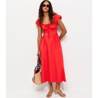 The New Look Dark Coral Lace Trim Midi Dress is available in sizes 10, 12, 14, 16, 18, 20, 22, 6, 8.