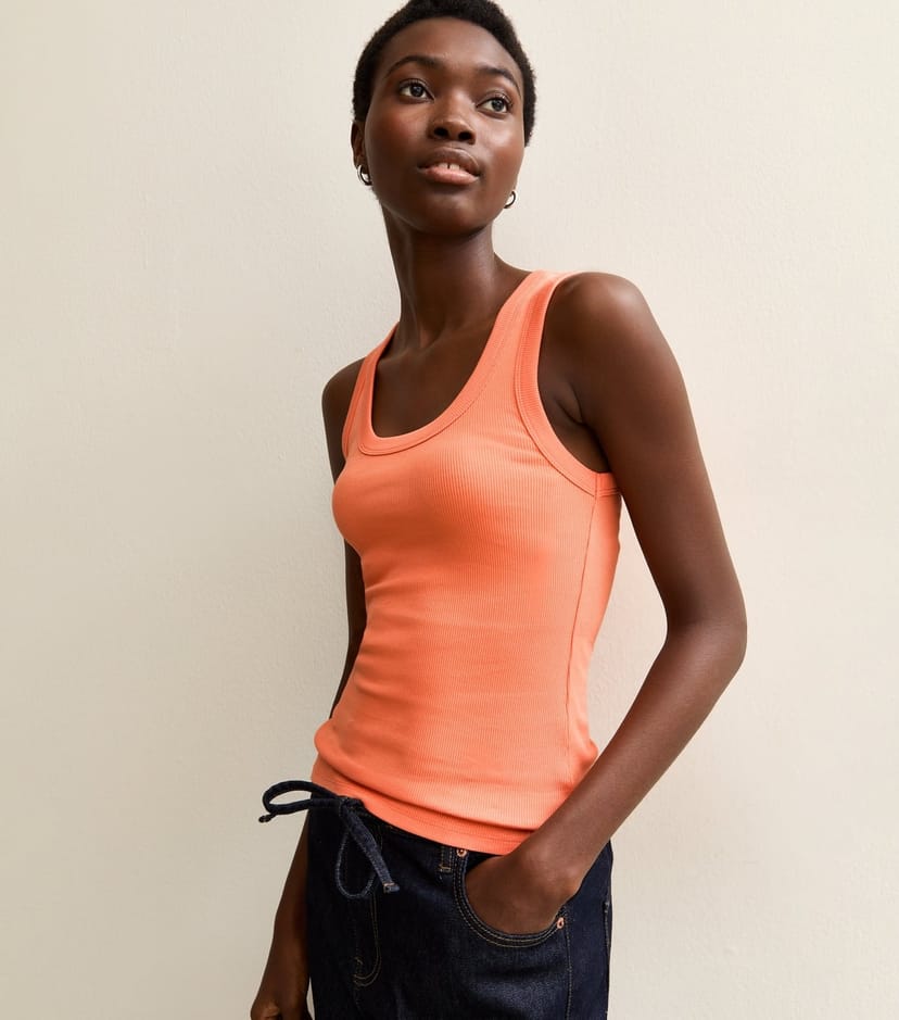 The New Look Coral Ribbed Jersey Scoop Neck Vest is available in sizes 10, 14, 16.