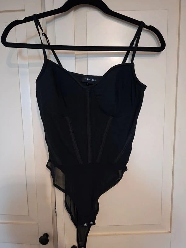 The New Look Black Mesh Corset Top is available in sizes M.
