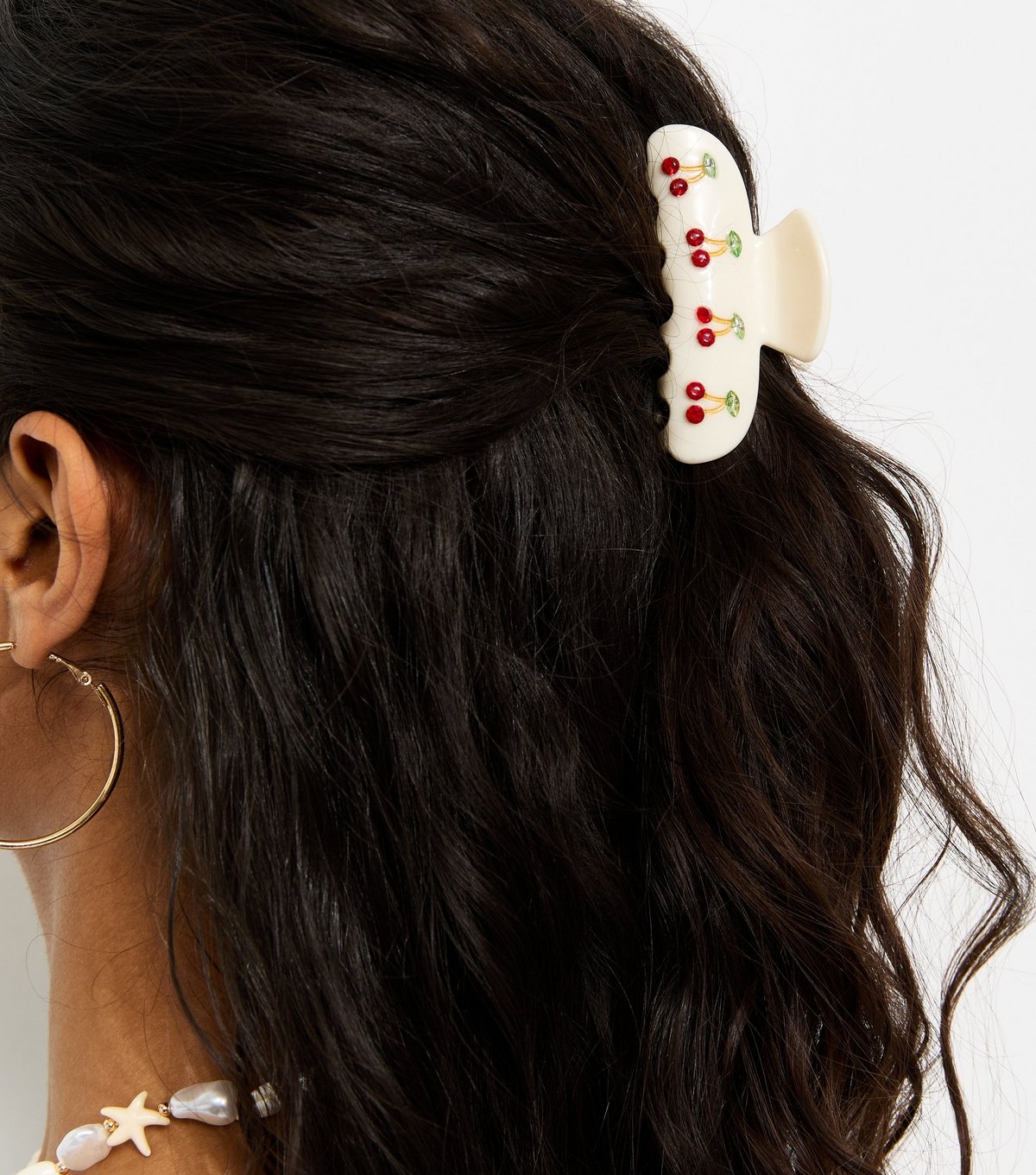 The New Look Cream Cherry Detail Hair Claw Clip is available in sizes ONE SIZE.