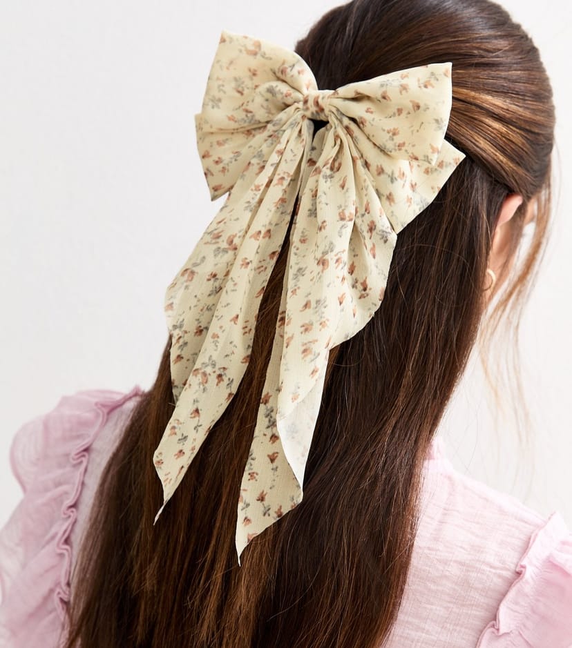 The New Look Cream Floral Chiffon Bow Hair Slide is ideal for casual, everyday, date-night.