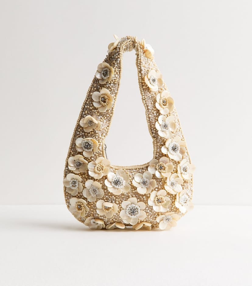 View New Look UK's returns policyThis cream mini bag from New Look is a beaded clutch with three-dimensional floral embellishments. The neutral base is perfect for elevating any look.