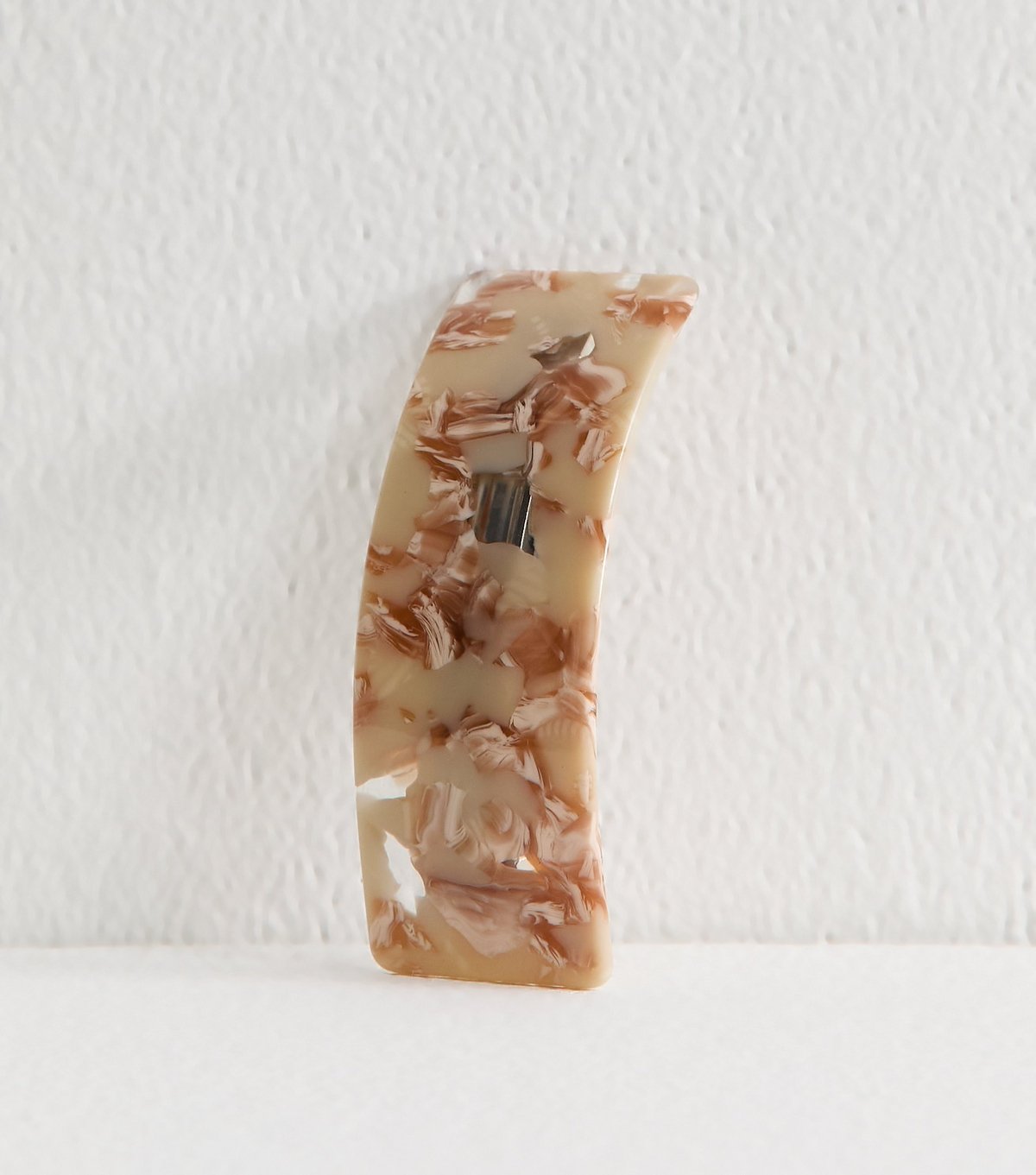 Retro-inspired cream resin hair slide with a curved shape. The textured resin material adds a chic touch to your hair, perfect for casual days or evenings out.