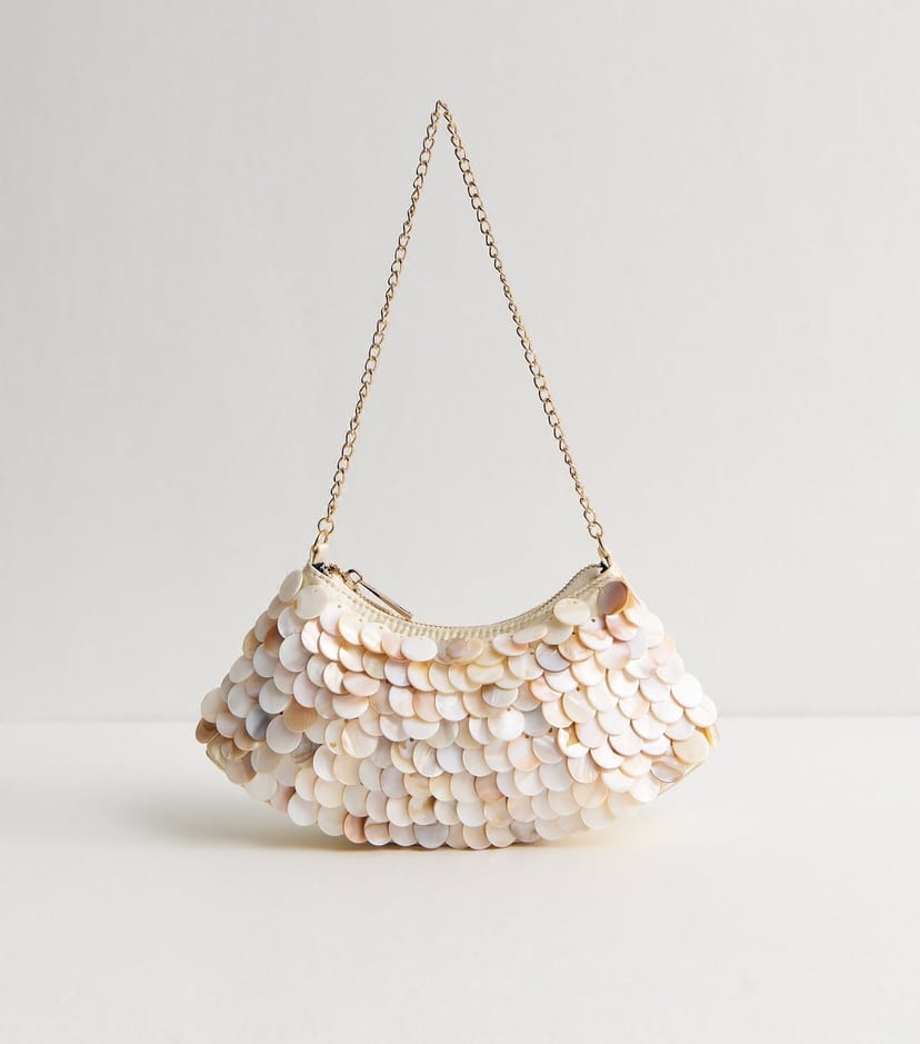 The New Look Cream Satin Faux-Shell Shoulder Bag is available in sizes ONE SIZE.
