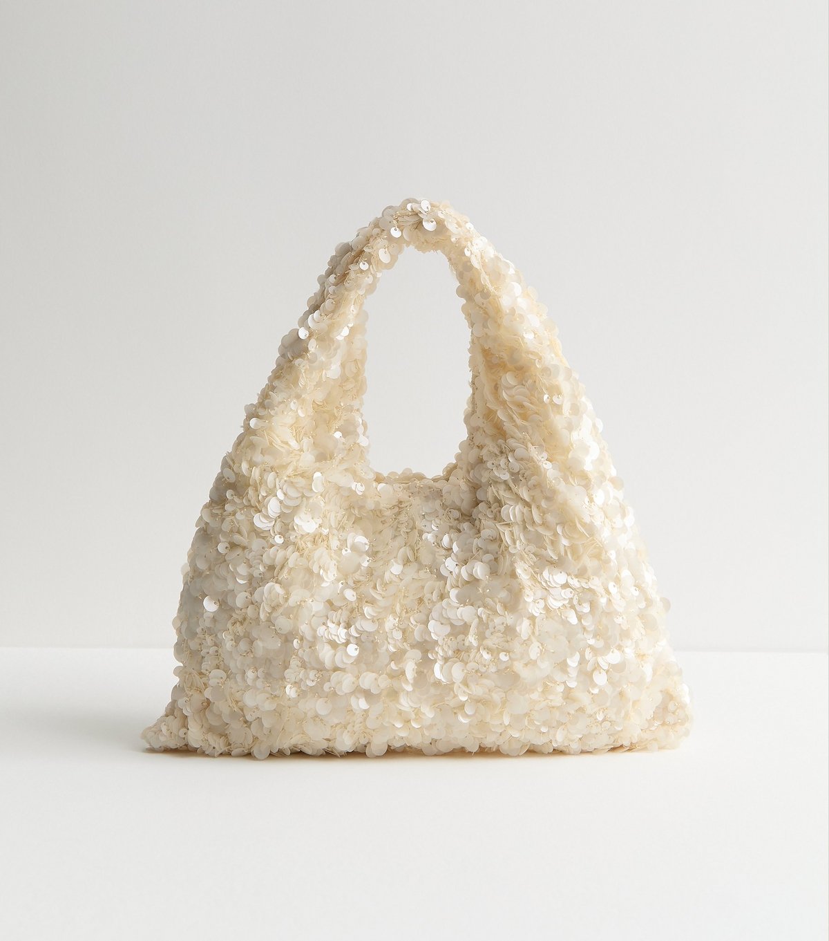 The New Look Cream Sequinned Grab Bag is made from sequins.