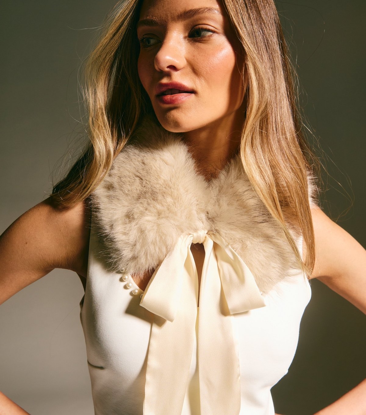 The New Look Cream Faux Fur Collar is made from faux fur.
