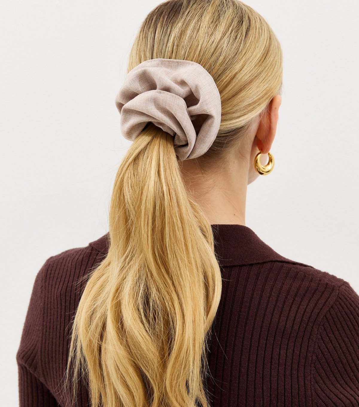 The New Look Oatmeal Linen Look Oversized Scrunchie is made from linen-look fabric.