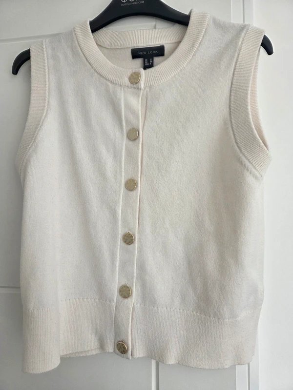 This cream waistcoat by New Look is a versatile addition to your wardrobe. Crafted with a round neck, it features a button closure and is perfect for layering over dresses or tops.