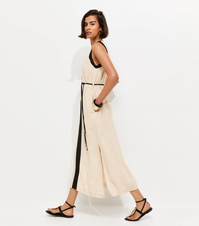The New Look Cream Contrast Trim Column Midi Dress is made from woven.