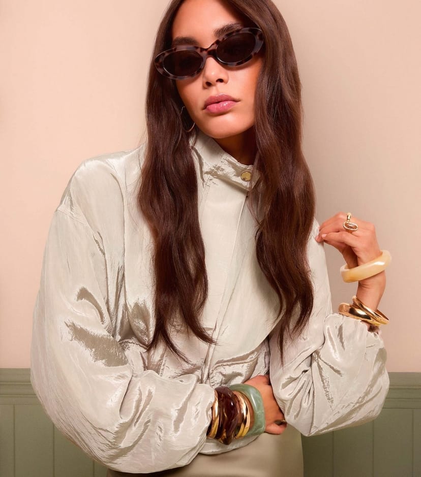 This cream shell bubble hem jacket by New Look is a lightweight and shiny piece, perfect for transitional styling. It features a high neck and a relaxed fit, making it an ideal choice for a city break.