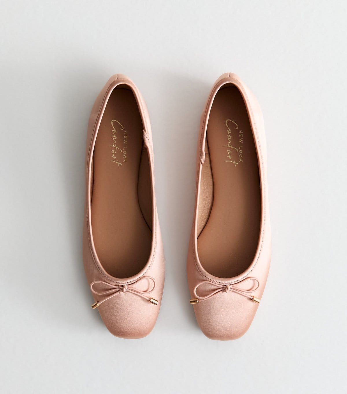 The New Look Pink Satin Ballet Flats Vegan is ideal for casual, everyday, spring.