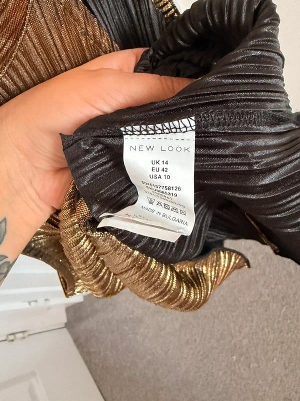 The New Look Gold Cropped Halter Top is made from polyester, spandex.