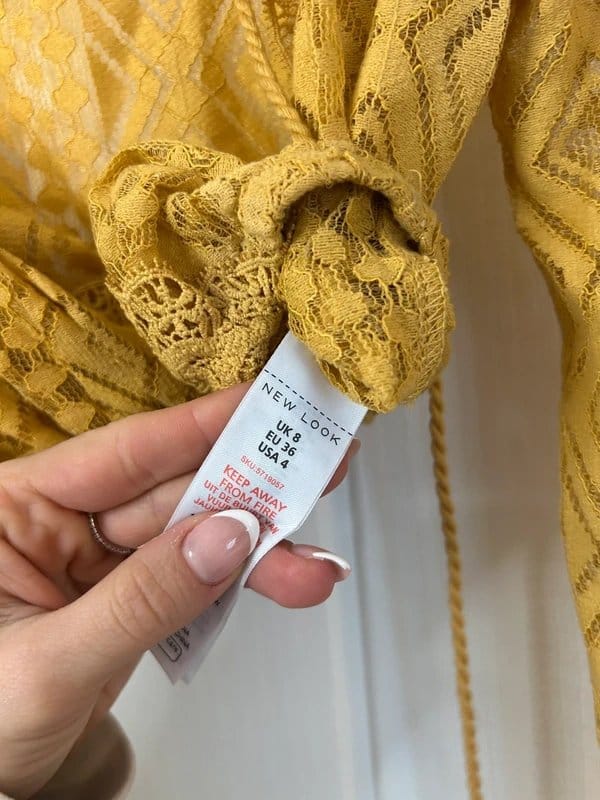 The New Look Mustard Lace Crochet Top is available in sizes S.