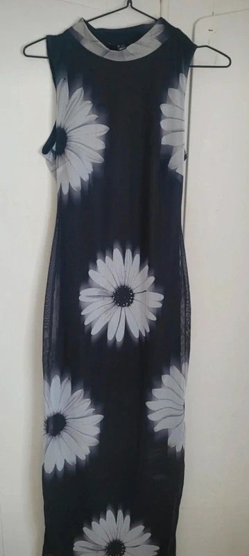 The New Look Floral Bodycon Tulle Midi Maxi Dress is available in sizes S.